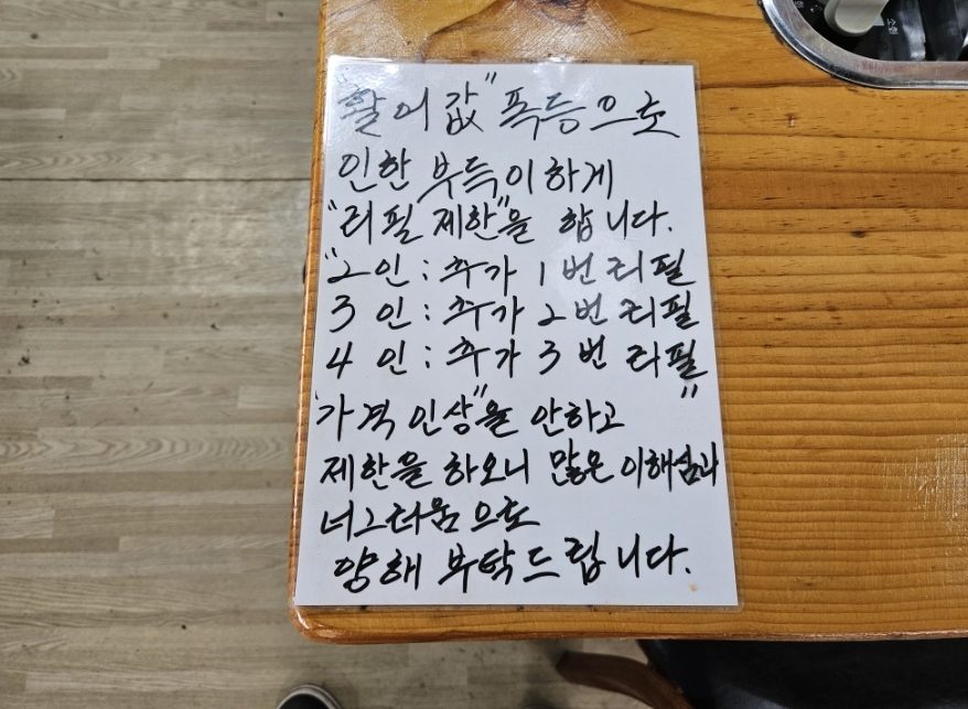 - B 코스 : 16,800원 (오징어무침, 샤브샤브, 삼겹살 무한리필)